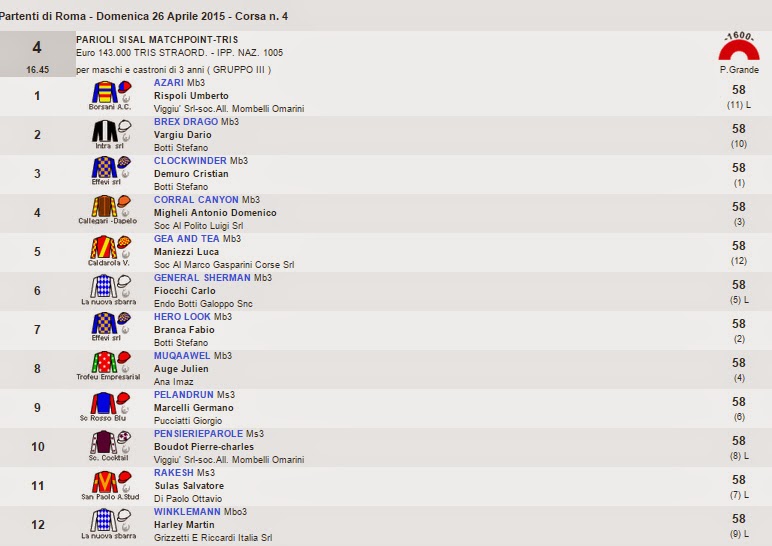 Muqaawel, propiedad de la cuadra Di Benisichi y preparado por Ana Imaz, no se ha colocado en el Premio Parioli Sisal, Grupo III, en el hipódromo italiano de Campannelle de Roma. Esta carrera se corre sobre la distancia de 1.600 mts y con una dotación de 143.000€ a repartir.